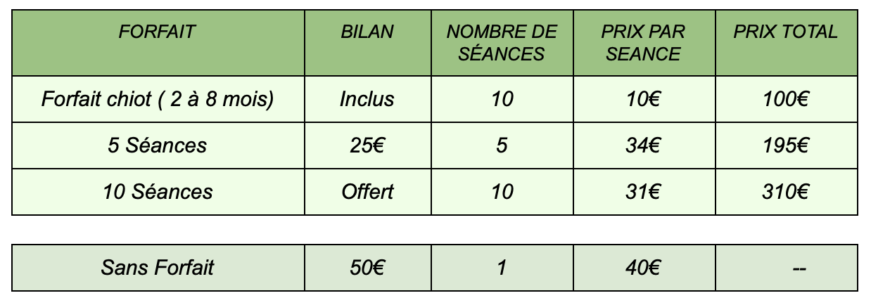 9 novembre 2018 1238 × 434 Tarifs éducation canine 2018:2019